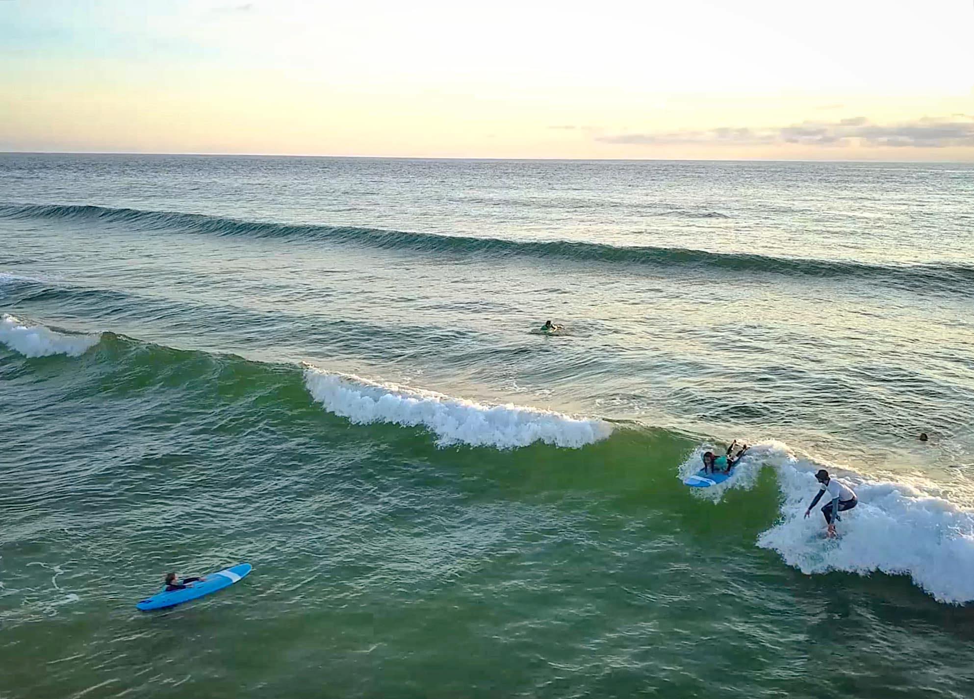Venez profitez de l'océan et de ses bienfaits en famille, entre amis en groupe ou en solo lors de cours de surf encadrés par des moniteurs diplômés et expérimentés. Nous proposons des cours collectifs, particuliers, des stages à la semaine, de la location de matériel, mais surtout des expériences inoubliables.
