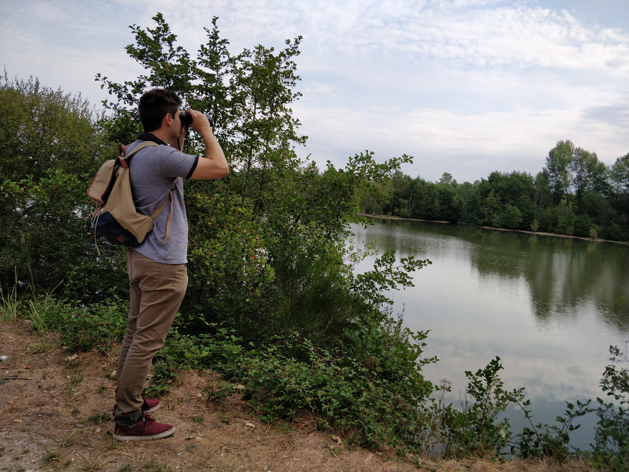 Aujourd’hui, je participe à une visite guidée organisée par l’Office de Tourisme sur l’observation des oiseaux. Ce mercredi matin de septembre, je me rends au bord de l’étang de Bronturon à Avensan. J’y retrouve les autres participants et notre guide du jour que l’on surnomme Monsieur Nature.